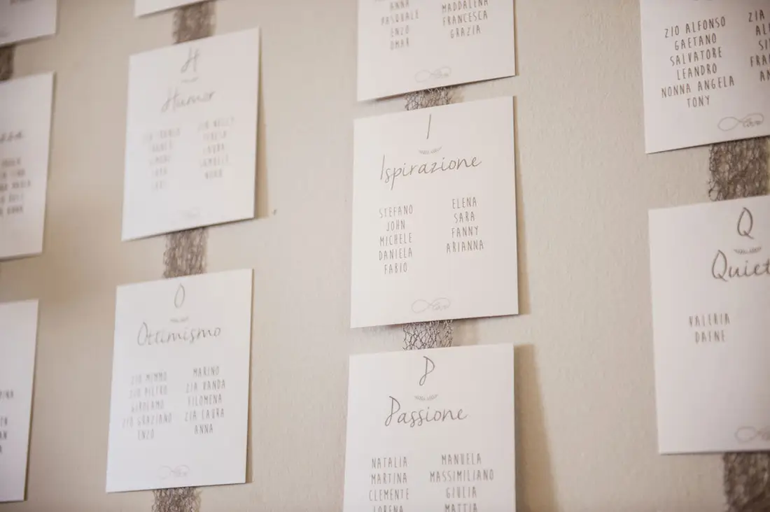 Ecco, no, su questo io NON vi posso aiutare. Non sono tantissime le cose che non posso fare per voi ma questa è una di quelle: non posso stilare per voi (o con voi…) la lista degli invitati ma posso aiutarvi a capire come impostarla così da avere tutte le informazioni degli ospiti sotto controllo (chi viene, chi non viene, se avrà bisogno di soggiornare, se ha allergie, intolleranze, quanti bambini ci saranno, quante partecipazioni stampare, etc….); non posso abbinare le persone ai vari tavoli….lo so, è la parte più difficile ma qui gli sposi sono insostituibili…posso darvi sostegno morale!